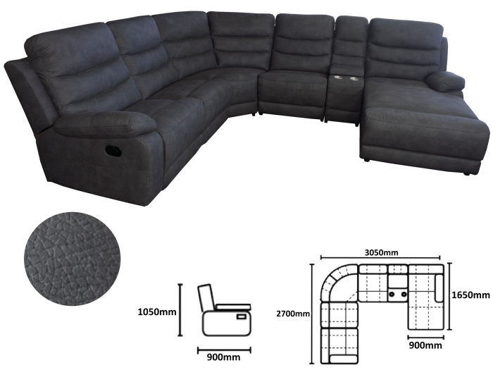 The Emily Charcoal Chaise Lounge is a spacious modular couch that is sure to be a great fit into any household. The Emily Charcoal is a flexible couch able to be moved into many different configurations to fit most homes, With 2 reclining chairs and the backrest of the chaise able to recline back it is sure to keep anyone sitting on it relaxed, weather its friends on a weekend or a family sitting down for a movie after a long day.